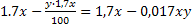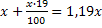 Ապրանքի գինը բարձրացրին 70%-ով։ Այնուհետև նոր գինը իջեցրին։ Արդյունքում ապրանքի գինը սկզբնականի նկատմամբ ավելացավ 19%-ով։ Իջեցումը քանի՞ տոկոսով էր կատարվել։
